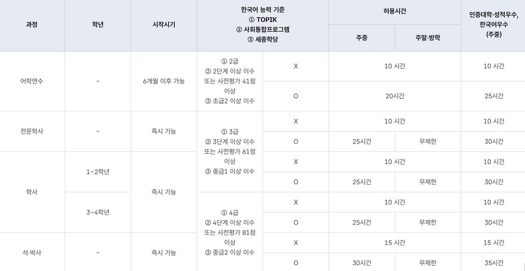 • 유학 체류자격 중 세부 체류자격 D-2-1 ~ D-2-4, D-2-6, D-2-7 해당자